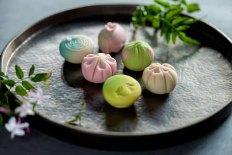 四季を美しく表現する和菓子『練り切り』をちりばめビュッフェスタイルにしました。