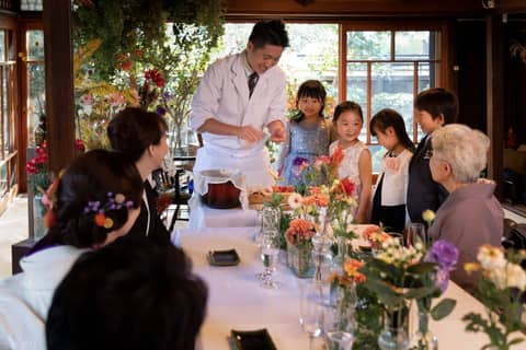 コースのお料理の最後に幸せのお裾分けをお二人からされてみてはいかがでしょうか?